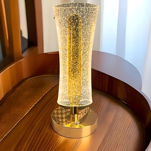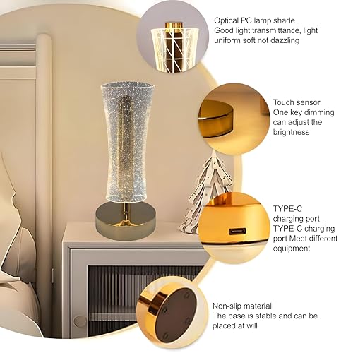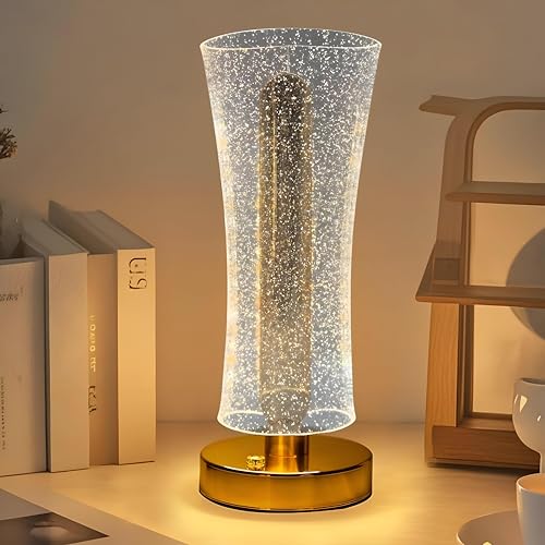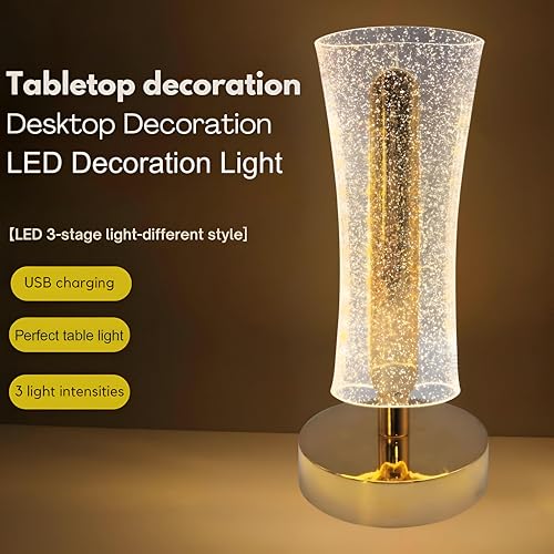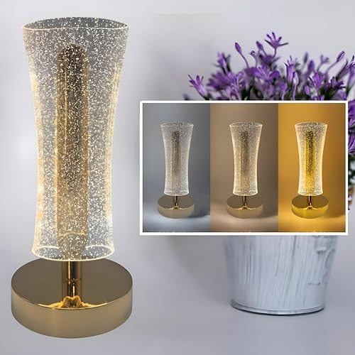 Generic - مصباح مكتب اكريليك بإضاءة ليد ثلاثية الأبعاد مع قاعدة ذهبية، تصميم قبة سماوية مرصعة بالنجوم مع تحكم باللمس، إضاءة ليلية لاسلكية لغرفة النوم وغرفة المعيشة مع هيكل بلاستيكي مزخرف (عبوة من 1 قطعة)