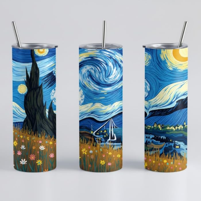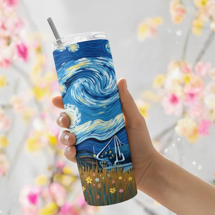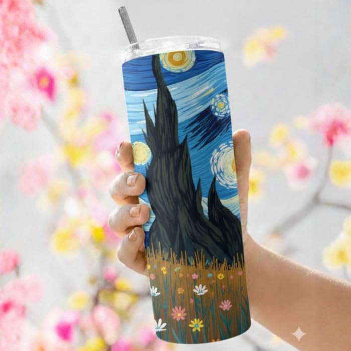 Generic - كوب قهوة نحيف معزول بتصميم ليلة مرصعة بالنجوم مع غطاء بطلاء زيتي 20 اونصة - زجاجة مياه من الستانلس ستيل قابلة لاعادة الاستخدام للمشروبات الساخنة والباردة، كوب شاي وقهوة مثلجة للسفر