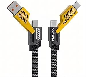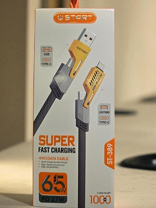 - كابل USB متعدد 4 في 1 من ستارت ST-389 شاحن سريع بطول 1.2 متر النايلون مع نوع ايه/USB سي إلى 65 وات سي/ و L توصيل طاقة 27 لون اسود