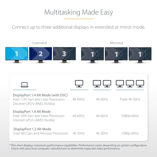 - مخرج مرن متعدد الشاشات: شاشات ثلاثية أو مزدوجة أو فردية حتى 1 × 4K 60 Hz و2 × 4K 30Hz (انتل الجيل الحادي عشر أو الأحدث مع DSC مطلوب للحصول على أقصى أداء)؛ يستخدم كارت الشاشة المدمجة أو المنفصلة للكمبيوتر المحمول للحصول على فيديو غير مضغوط واستخدام منخفض لوحدة المعالجة المركزية.