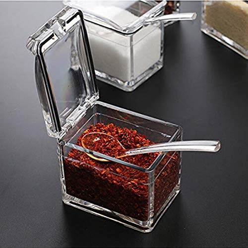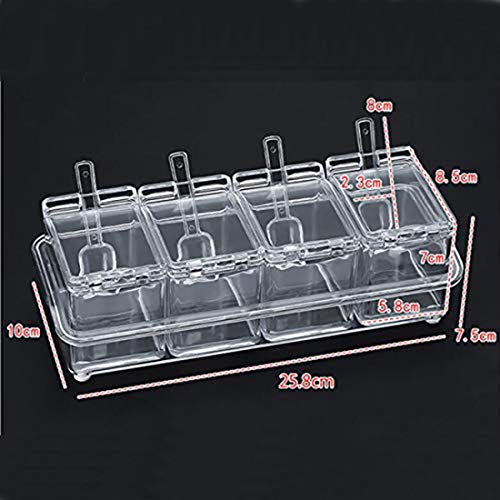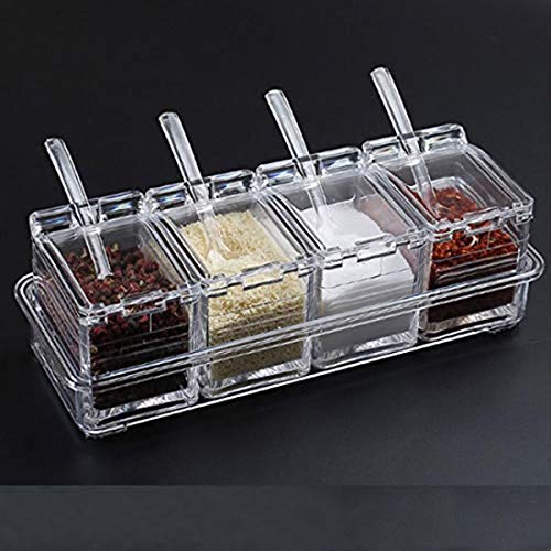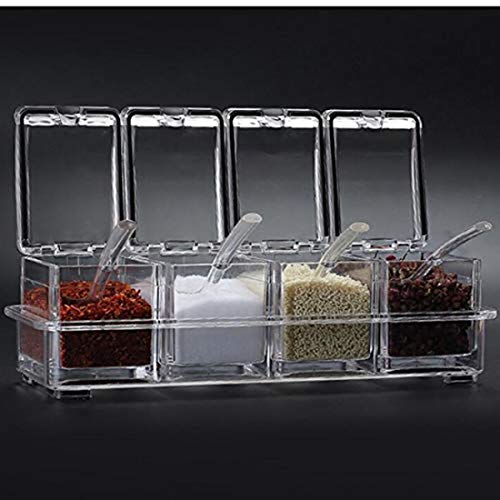 Starthi - علبة رف توابل شفافة من ستارثي - صندوق مكون 4 قطع الاكريليك - حاويات لتخزين التوابل على شكل برطمانات - زجاجية ذات غطاء ومعلقة