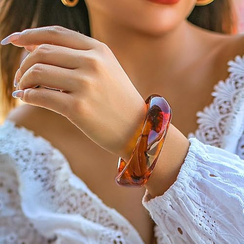 Generic - مجموعة اساور معصم - مجموعة من اساور عريضة بتصميم هندسي غير منتظم للنساء، اساور حلقية مكتنزة على شكل بانك مصنوعة من مادة راتنج الاكريليك الجريئة.