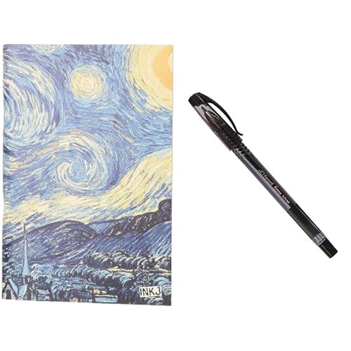 Generic - مجموعة أدوات مكتبية: دفتر رسم بتصميم ليلة مليئة بالنجوم مقاس A5 + قلم جاف بلون اسود