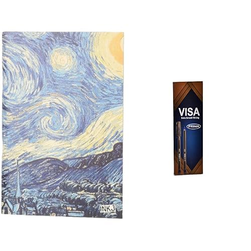 Generic - مجموعة أدوات مكتبية: كشكول رسم مقاس A5 بتصميم ليلة مليئة بالنجوم مع قلم حبر جاف بريما فيزا أزرق من 10 قطع