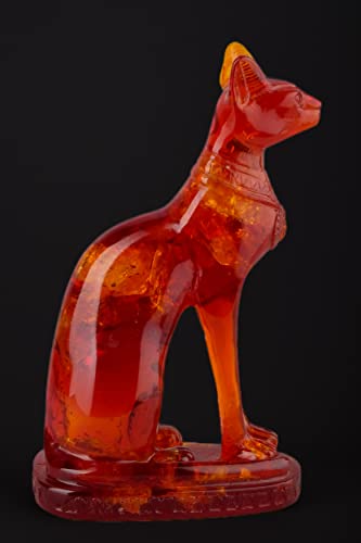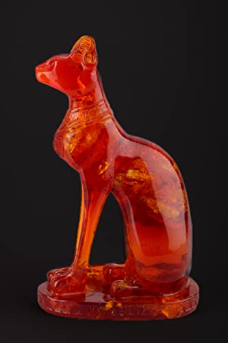 generic - تمثال فرعوني على شكل الإلهة المصرية القطة باستت بلون كهرماني لتزيين المنزل، صنع في مصر