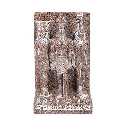 Other - تمثال فرعونى لثالوث الملك منكرع بين حاتحور على يمينه وبات على يساره مصنوع من حجر الجرانيت البنى بيج