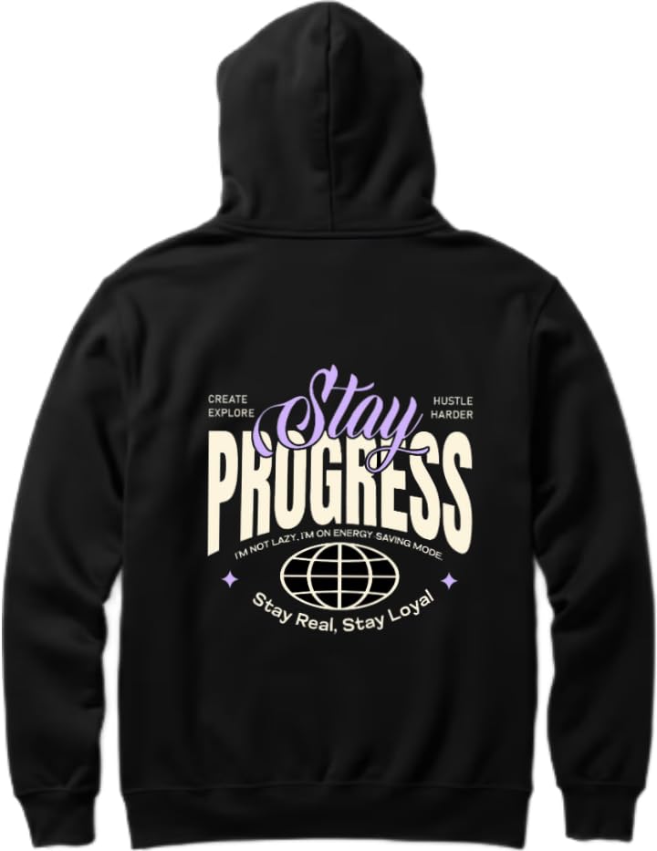Generic - Stay Progress كنزة ذات قبعة ظهر أسود