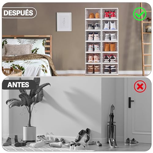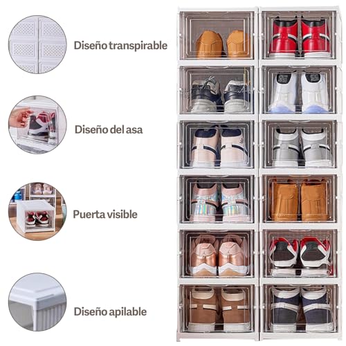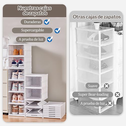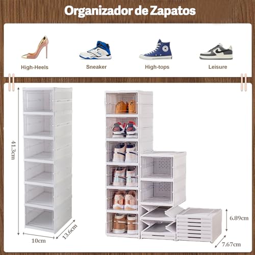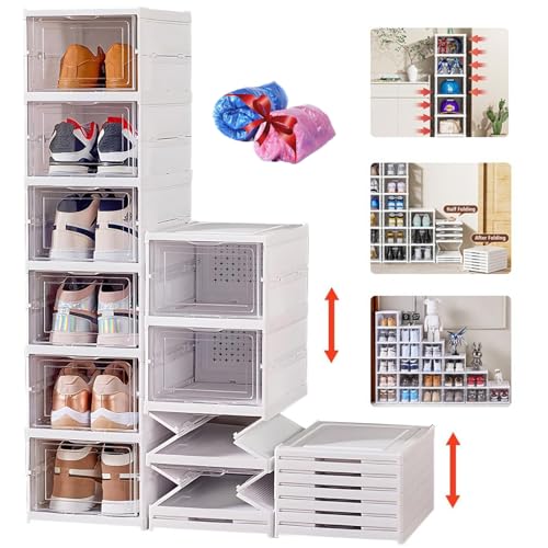 STAYOUNG - صناديق أحذية ستاي يونج - منظم أحذية قابل للطي بستة طبقات، تخزين أحذية قابل للتكديس بباب شفاف للأحذية والألعاب