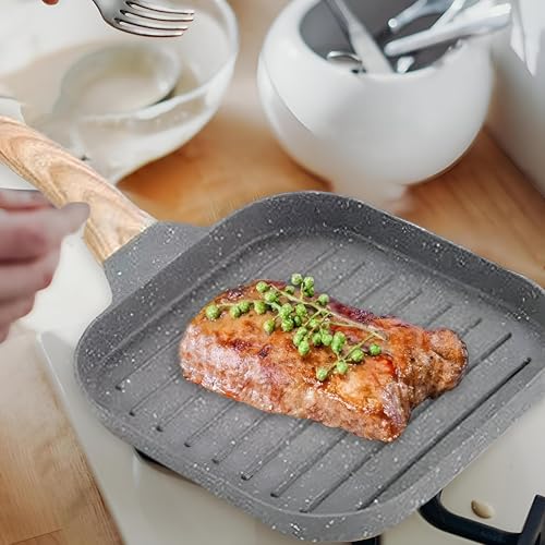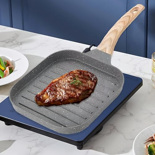 Generic - صينية شواء ستيك - سطح شواء ممتاز لشرائح اللحم العصير ولحم الخنزير المقدد المقرمش والبيض المثالي، متينة ومقاومة للحرارة