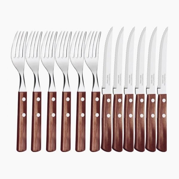 Generic - طقم سكاكين وشوكة شرائح اللحم، 12 قطعة، فولاذ مقاوم للصدأ بمقابض خشبية