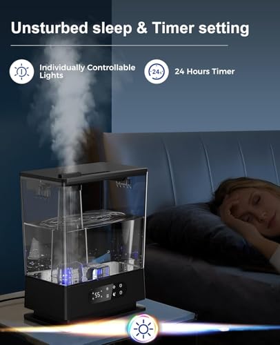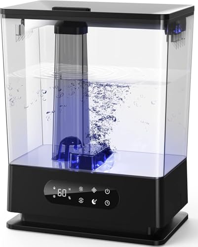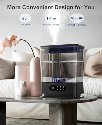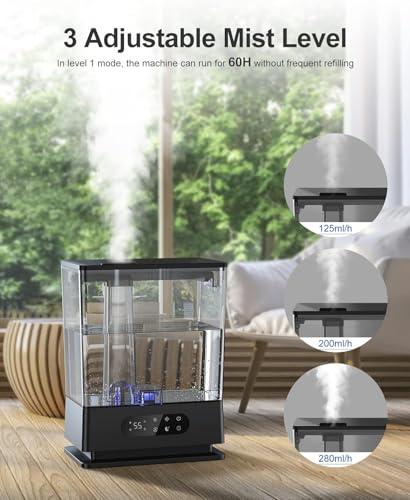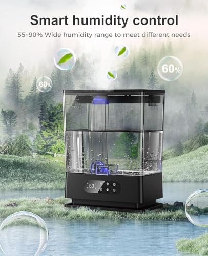 DOMA - مرطب هواء بارد بفتحة تعبئة علوية سعة 6.5 لتر للغرف الكبيرة والمنزل والمكتب مع تحكم مخصص في الرطوبة للنوم والنباتات، سهل التنظيف، أسود (60 ساعة عمل)