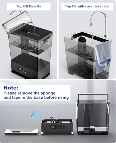 • نصائح متعددة للاستخدام: 1: يرجى إزالة الإسفنجة الواقية البيضاء من القاعدة قبل إضافة الماء. 2: يوصى باستخدام الماء المقطر أو الماء المصفى، إذا كنت تستخدم ماء الحنفية، يرجى تذكر القيام بالتنظيف كل أسبوع.