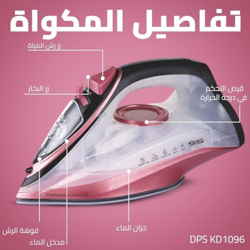 Generic - مكواة بخار 2200 وات، قاعدة مطلية بالسيراميك، خزان مياه 275 مل، بخار قوي، تنظيف ذاتي، بخاخ، محمولة للملابس، KD1096