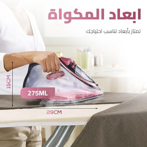 - قوة مكواة البخار: 2200 وات تسخن بسرعة وتطلق بخار ثابت لكي القمصان والعبايات والزي المدرسي قبل الخروج في زحمة القاهرة.