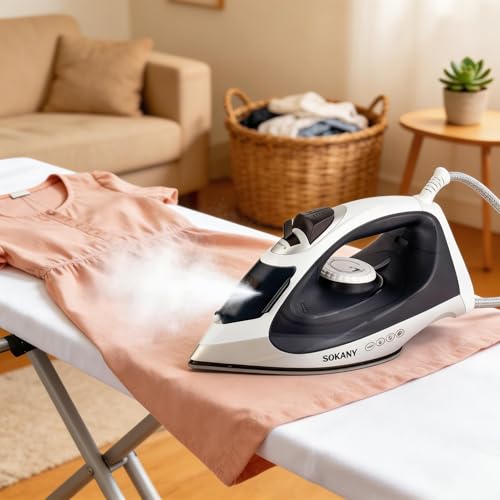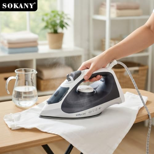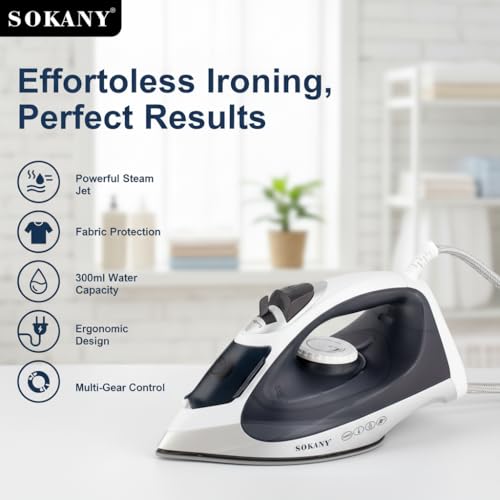Sokany - مكواة بخار 2200 واط مع قاعدة من السيراميك، خزان مياه 300 مل، بخار عمودي، تنظيف ذاتي، وظيفة الرش، سلك دوار 360 درجة، درجة حرارة قابلة للتعديل، سوكاني SK-11001