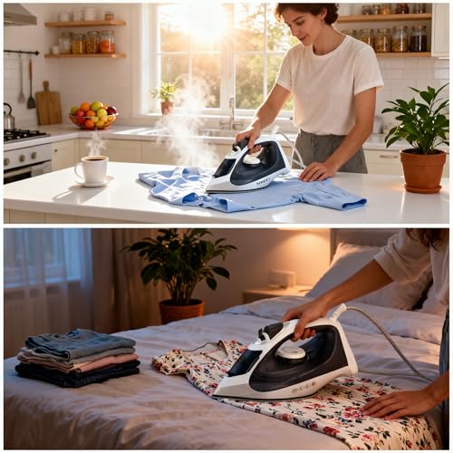 - أداء مكواة البخار يواكب الصباح المزدحم. تساعد الطاقة 2200 واط وقاعدة السيراميك والبخار العمودي على تنعيم القمصان اليومية والعباءات والسراويل والزي المدرسي مع سحب أقل وتمريرات متكررة أقل.