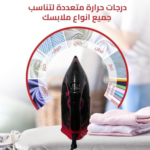 Generic - مكواة بخار 2600 وات بقاعدة سيراميك متغيرة للتحكم في البخار مع بخاخ عمودي ذاتي التنظيف ومضاد للتنقيط مع إيقاف تلقائي وحرارة سريعة، HG-803 (لون أحمر)