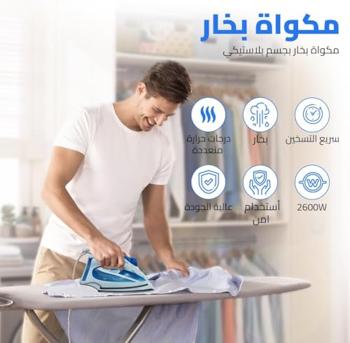 - سيكون يوم الغسيل أسهل مع مكواة بخار قوية بقوة 2600 وات تسخن بسرعة وتنعم التجاعيد العنيدة في ثوانٍ، مما يوفر لك الوقت قبل العمل أو المدرسة أو المناسبات الخاصة.