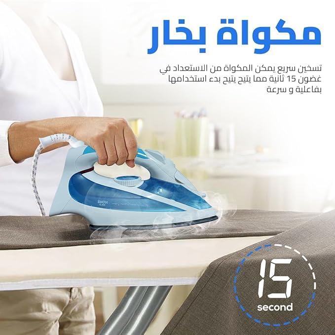 - قوة عالية: مكواة بخار قوية بقدرة 2200 واط للكي السريع والفعال