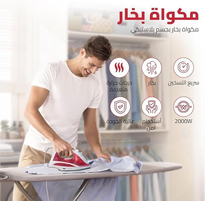 - ملابس خالية من التجاعيد في ثوانٍ - مع قوة 2000 وات وتسخين سريع لمدة 15 ثانية، تجعل مكواة البخار هذه الكي أسرع وأسهل للعائلات المصرية في الصباح المزدحم.