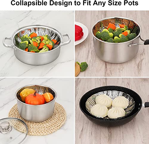 Generic - سلة طهي بالبخار من الستانلس ستيل للطعام والخضروات، قابلة للتوسيع لتناسب الأواني بأحجام مختلفة، متعدد الألوان