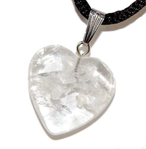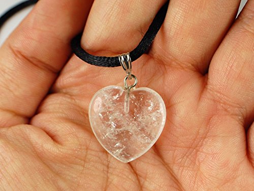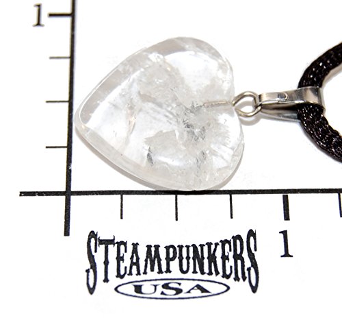 Steampunkers USA - مجموعة بيج هارت - 20 ملم كوارتز ابيض شفاف كلاسيكي - حبل اسود 20-22 انش - قلادة منحوتة من الاحجار الكريمة الكريستالية مصنوعة يدويا للنساء للرجال للبالغين الجنسين بنات الأولاد
