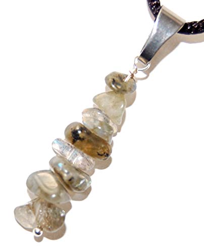 SteamPunkers USA - اصدار محدود - مينرز هورد - دلاية على شكل شريحة 30 ملم لابرادوريت، رمادي - حبل اسود - قلادة من الاحجار الكريمة الكريستالية الطبيعية
