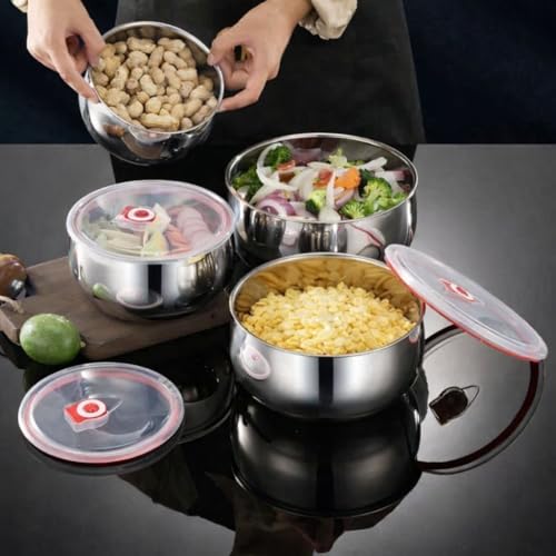 - مجموعة من 3 أوعية: تأتي مع ثلاث حاويات محكمة الإغلاق من الستانلس ستيل بأحجام مختلفة، مثالية لتخزين مجموعة واسعة من الأطعمة في الثلاجة.