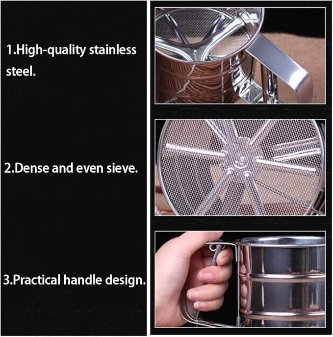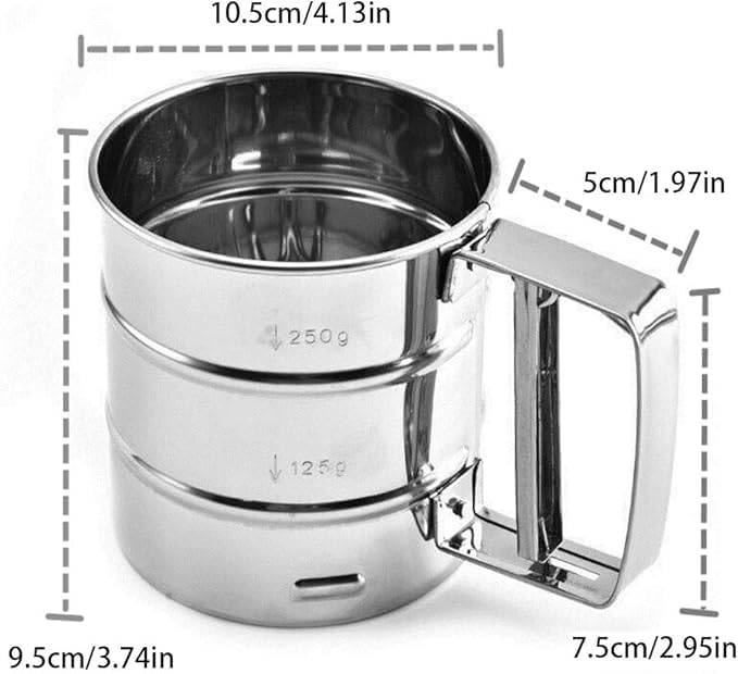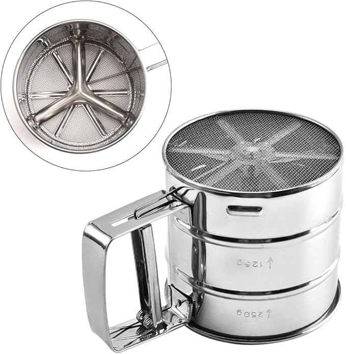 - غربّلة دون مجهود: يسمح التصميم اليدوي بِنخل الدقيق والسكر البودرة ومسحوق الكاكاو والمزيد بسلاسة وكفاءة.