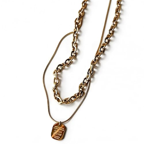 Generic - Steel Jewelry - Fashionable niche design irregular chain titanium gold-plated multi-layer layered pendant necklace strong lasting shine accessory item gift idea