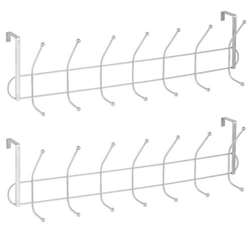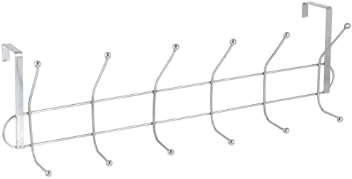 Generic - رف ملابس من الصلب فوق الباب مع 6 خطافات سيليكون مرنة باللون الفضي؛ رف ملابس متين للملابس والفوط والشنط، منظم منزلي موفر للمساحة، حجم كبير، قطعة واحدة