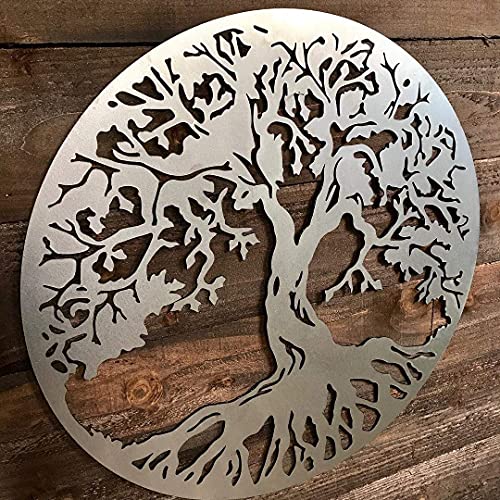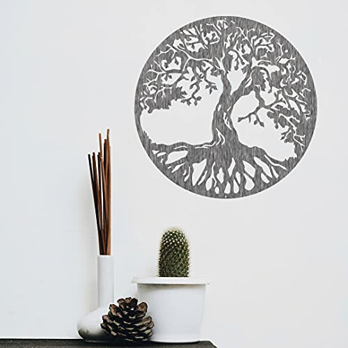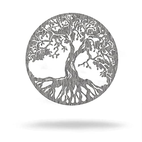 Steel Roots Decor - لوحة فنية جدارية معدنية مصقولة مطلية بمسحوق على شكل شجرة الحياة بفتحات مقطوعة بالليزر من ستيل روتس ديكور (45 سم رصاصي مصقول)