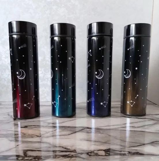 Generic - زجاجة مياه فولاذية معزولة بتصميم السماء الليلية، 500 مل، جدار مزدوج، متعددة الألوان، تحافظ على البرودة 24 ساعة والسخونة 12 ساعة