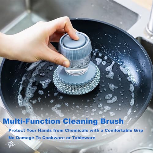 Spaceshoop - منظف أطباق من الصوف الصلب للمطبخ مع فرشاة توزيع الصابون لراحة اليد، فرشاة غسل أطباق للأواني مع موزع صابون