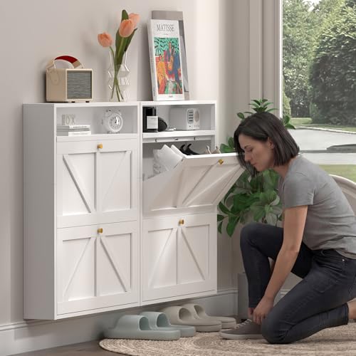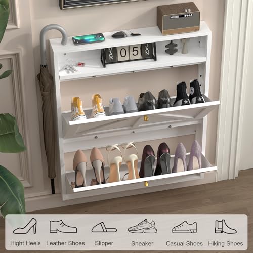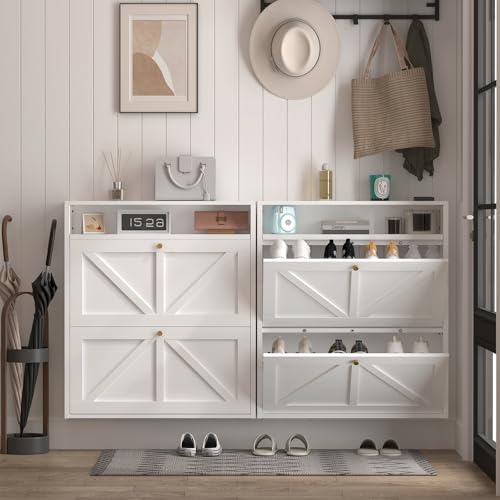 STEELIST - خزانة احذية من ستيليست مع درجين قلابين، تخزين احذية باب المزرعة الامامي، منظم خزانة مخفي للاحذية، طاولة مدخل مع تخزين الاحذية، خزانة مثبتة على الحائط للممر وغرفة النوم والمدخل