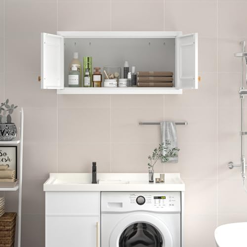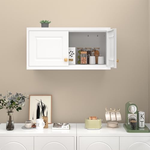 - 【تصميم فريد】تتميز خزانة التخزين الجدارية بمقبض باب ذهبي فاخر وتصميم عصري بباب مزدوج. تعمل بشكل ممتاز كخزانة علوية قائمة بذاتها أو تتماشى بشكل مثالي مع خزانة طويلة، مما يوفر لك سعة تخزين قوية للحفاظ على مساحتك منظمة
