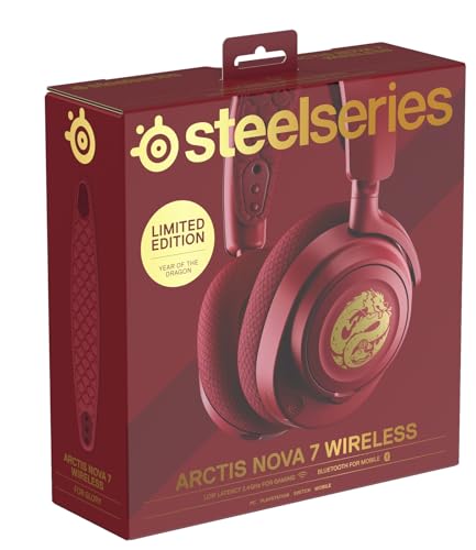 SteelSeries - سماعة رأس لاسلكية للألعاب 61557 اركتيس نوفا 7 إصدار دراجون، إصدار محدود - خفيفة الوزن - الدردشة الصوتية والألعاب والهواتف الذكية في وقت واحد، لاسلكية، نوع مغلق، تدعم سويتش من ستيلسيريز