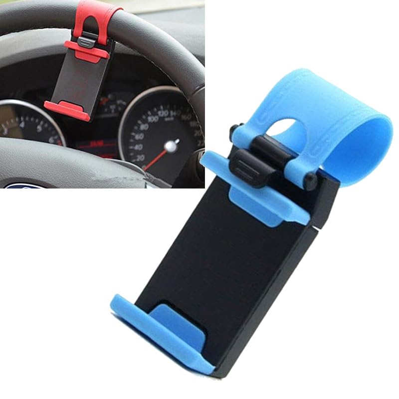 Generic - حامل موبايل بمشبك للتعليق بطارة الدركسيون ومناسب لجميع السيارات ، تصميم مرن لاستخدام حر اليدين للموبايل ( ازرق سماوى) - من كابر تريد