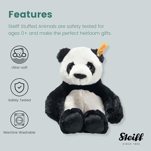 Steiff - لعبة مينج باندا 75650 الناعمة المحبوبة لدى الأطفال، محببة للاحتضان وقابلة للغسيل من شتايف، مقاس 27 سم، أبيض وأسود