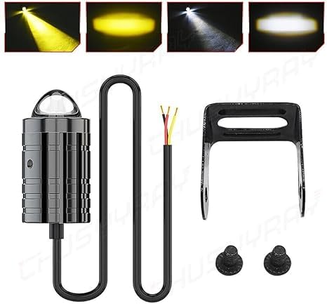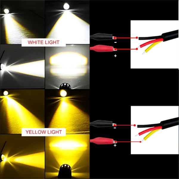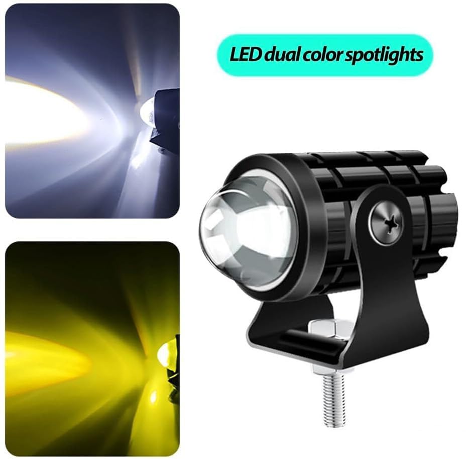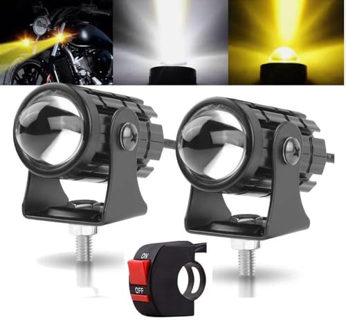 Steko - عبوة من قطعتين من ستيكو - مصباح ضباب ليد صغير فائق السطوع مزدوج اللون أصفر/أبيض بعدسات كشاف لدراجة السيارة (12 فولت، 36 وات) مع مفتاح