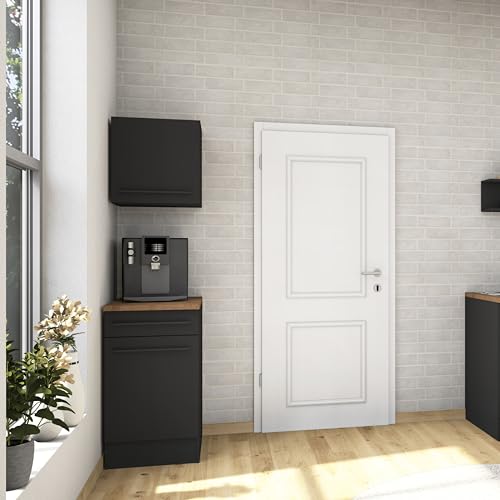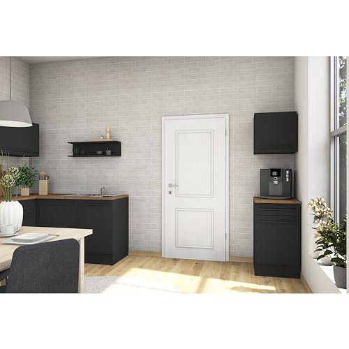 - عصري - الجزء الأمامي الأسود يكمله مقبض أسود ويتناسب تمامًا مع موسيقى الجاز في المطبخ. بفضل التصميم الخالد، يمكن أيضًا استخدام الخزانة بمرونة في مرافق المطبخ الأخرى.