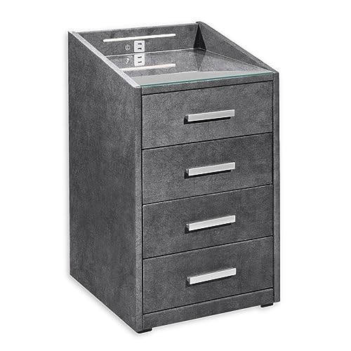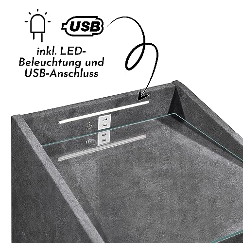 Stella Trading - صندوق طاولة كاليستو سرير زنبركي من ستيلا تريدنج، خزانة عملية بجانب السرير مع منفذ USB وإضاءة ليد، لون فحمي، مقاس 47 × 76 × 46 سم، بوليستر