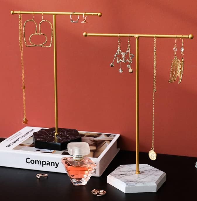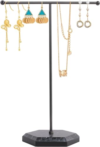 Generic - حامل عرض المجوهرات والسلاسل والحلقان من ستيلار ستورز معدني على شكل حرف T لتنظيم رف قلادة معلق مع قاعدة رخامية للأساور معدنية سوداء