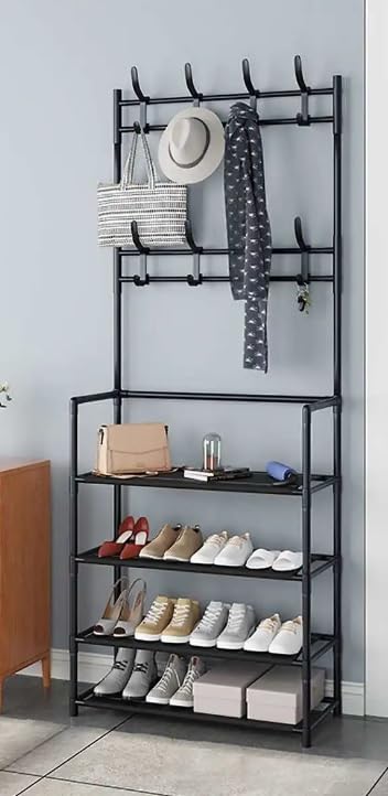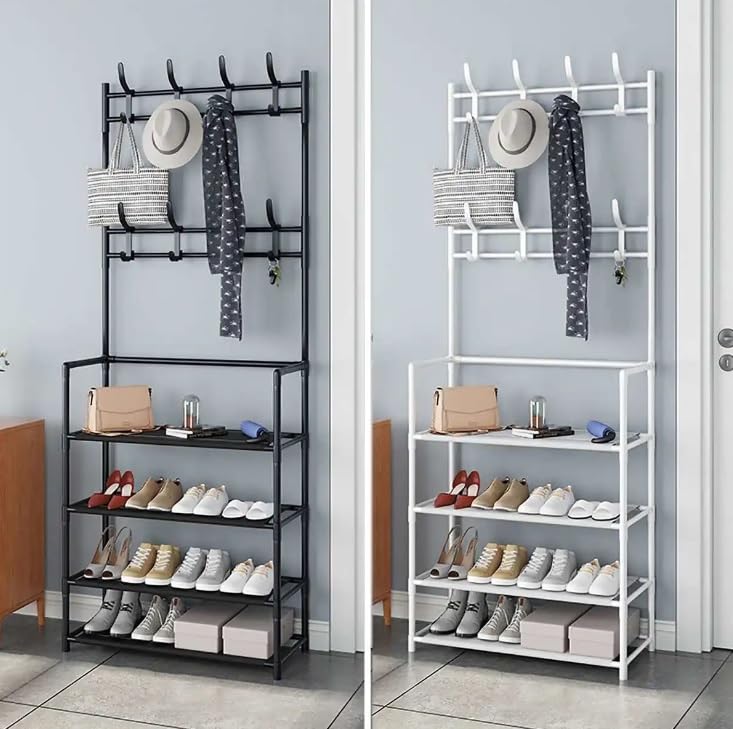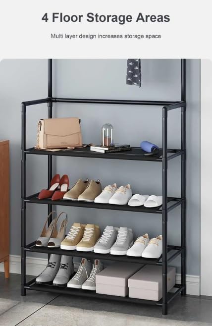 Generic - رف معاطف متعدد الوظائف مع 8 خطافات و4 طبقات لتنظيم الأحذية والجاكيتات والطواقي والمظلات، منظم للممرات بتجميع بسيط من ستيلار ستورز