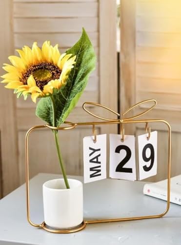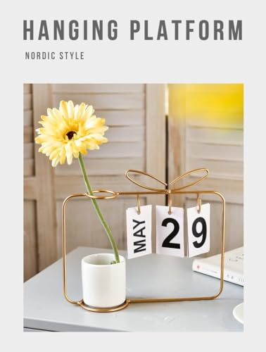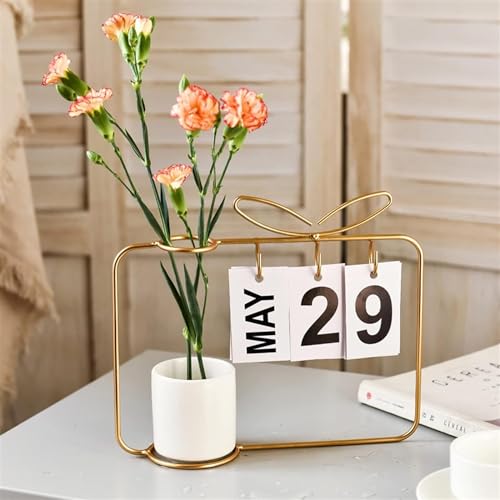 Generic - فازة على الطراز الاسكندنافي مع تقويم قلاب دائم، ديكور ابداعي بسيط بتصميم قصرية زرع سيراميك لغرفة النوم والمعيشة والمكتب والمطبخ والتربيزة الجانبية من ستيلار ستورز