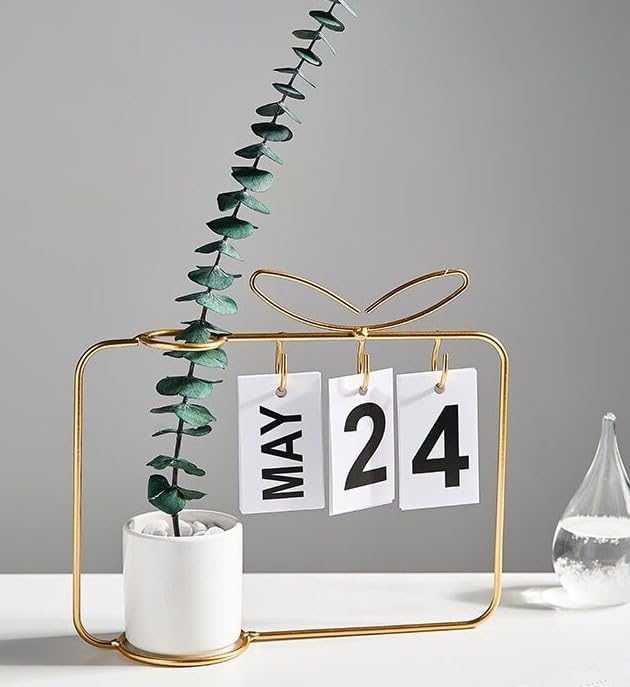 - تُعد هدية رائعة لعائلتك وأصدقائك، فهي تتميز بتصميم اسكندنافي عصري مبتكر بشكل فازة من السيراميك وتقويم قلاب يمكنك استخدامه كل يوم لإضفاء لمسة خضراء لطيفة على ديكور غرفتك.