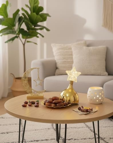 - يمكن استخدام الصينية متعددة الأغراض لتقديم التمور أو يمكنك استخدامها كفانوس لتزيين رمضان الذي يضيف أجواء رمضان الجميلة إلى طاولة الطعام أو طاولة القهوة أو حتى ديكور منزلك.