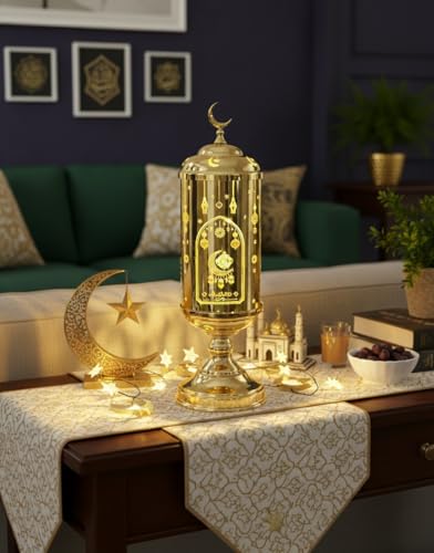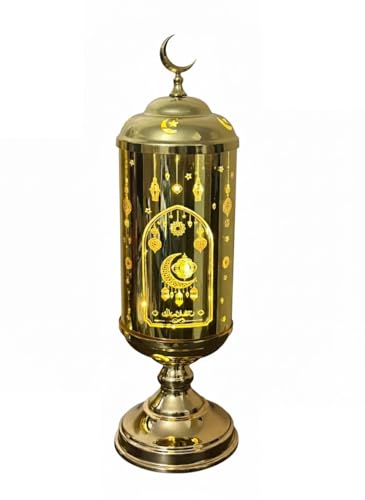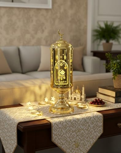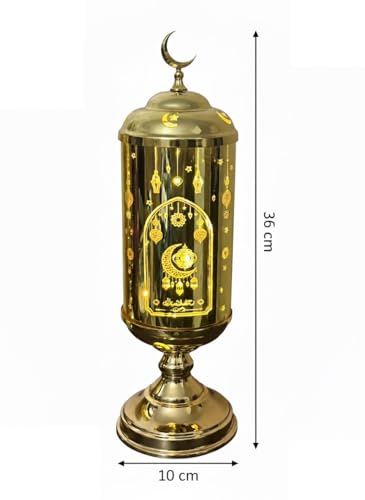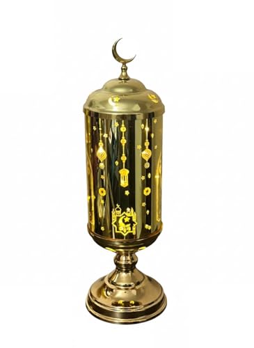 Generic - فانوس رمضان بتصميم فاخر من الزجاج والمعدن الذهبي من ستيلار ستورز، اضاءة LED لتزيين المنزل واحتفالات رمضان (مقاس M)