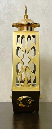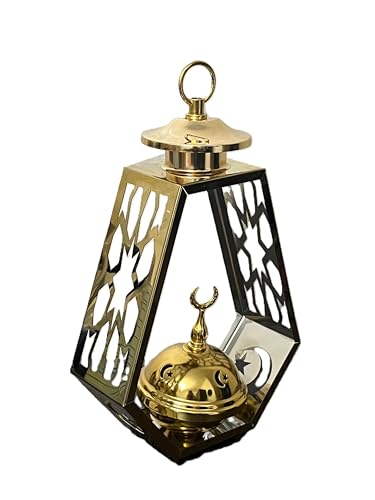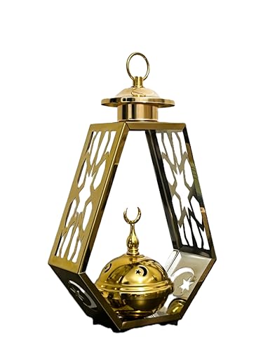 Generic - مبخرة معدنية على شكل فانوس رمضان من ستيلار ستورز، حامل بخور ذهبي لتزيين رمضان وديكور المنزل