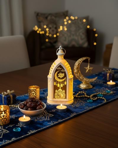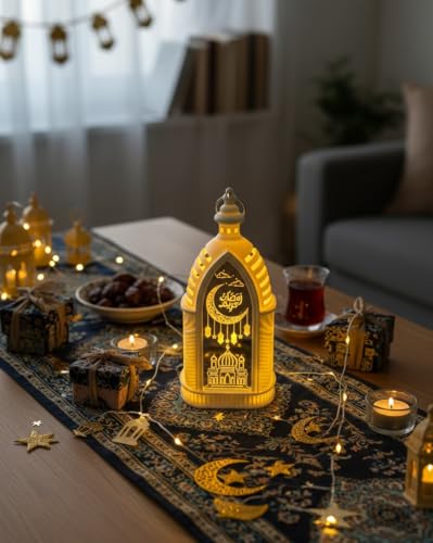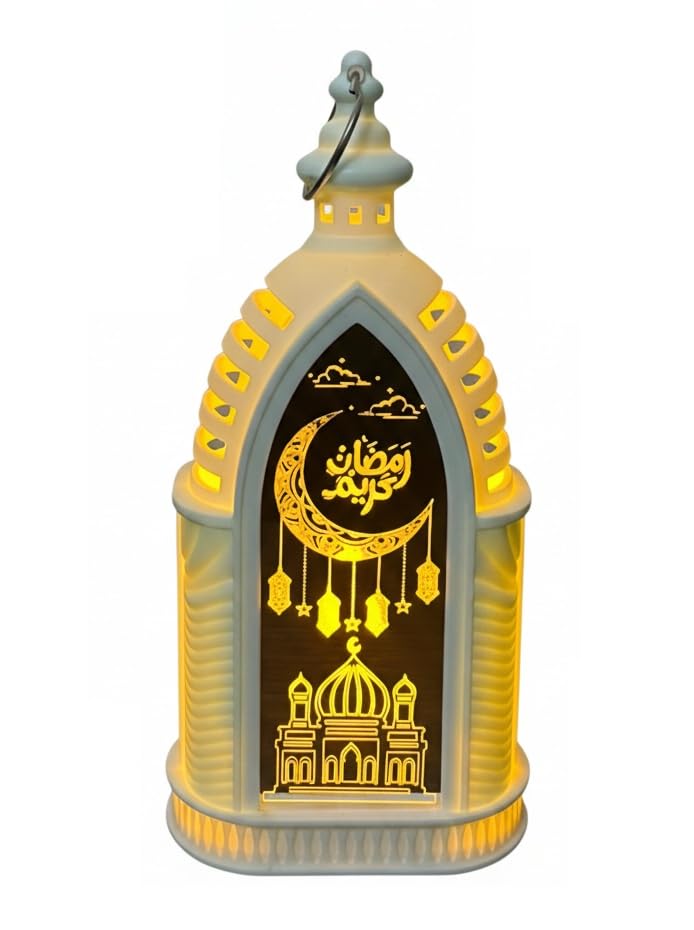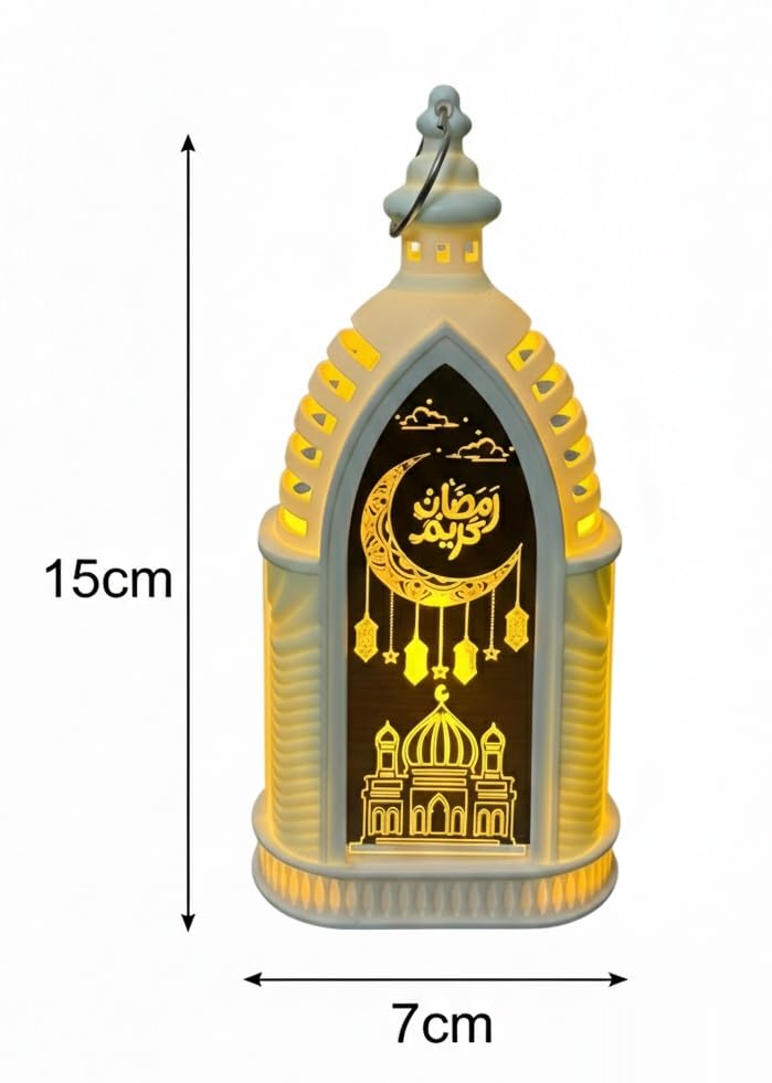 Generic - فانوس رمضان صغير مقوس مزخرف من ستيلار ستورز، فانوس رمضان مضيء على شكل هلال ومسجد، فانوس تقليدي صغير متوهج لرمضان (ابيض)